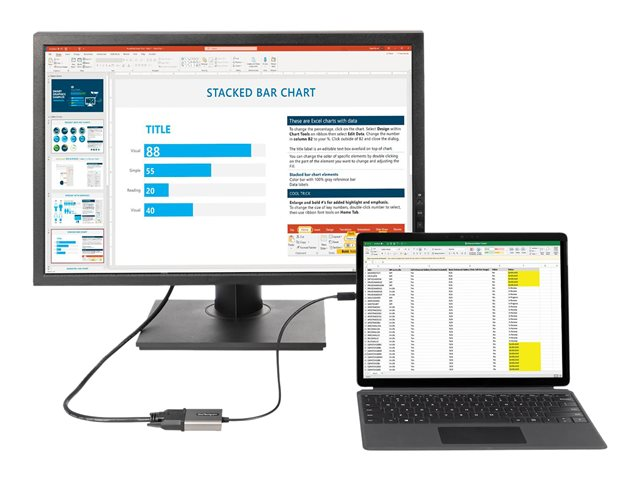 - Works with any USB Type-C (DisplayPort over USB-C) or Thunderbolt 3 (TB3) device