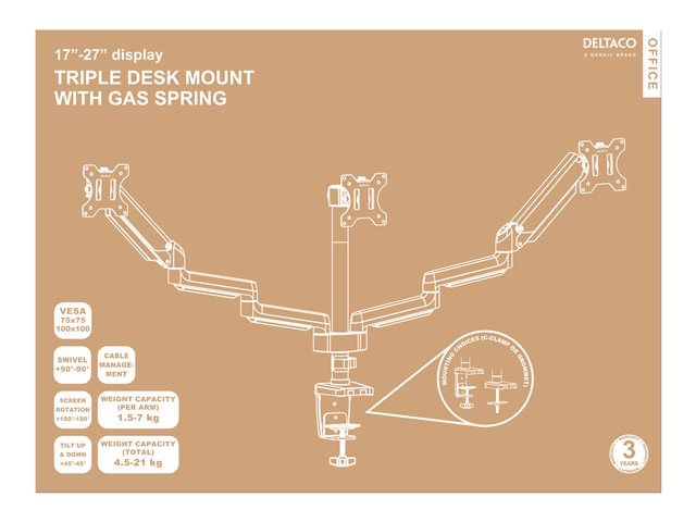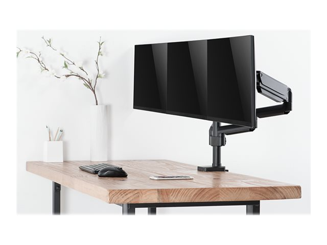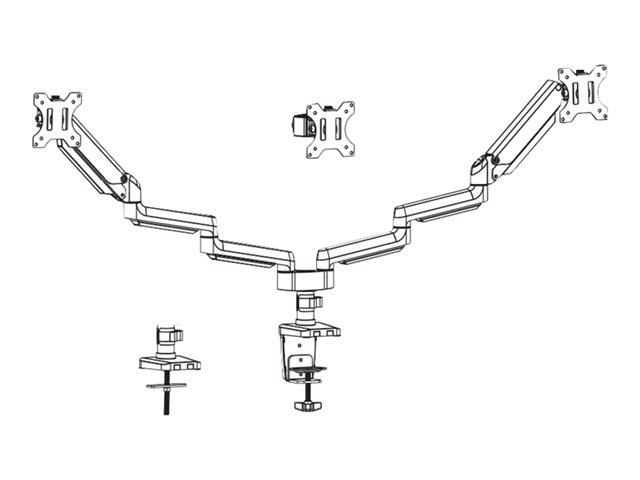 ARM-0352 har kortare armar avsedda att fungera perfekt för små arbetsområden. De flesta större fästen kan inte ge en lika sömlös look med dubbla skärmar på grund av mindre utrymme och deras längre armar. Med ARM-0352s korta armkonstruktion kan du fortfarande använda flera skärmar som sitter nära väggar eller i kontorslandskap med små utrymmen. Skrivbordsfästet är VESA kompatibelt med måtten 75x75,100x100.