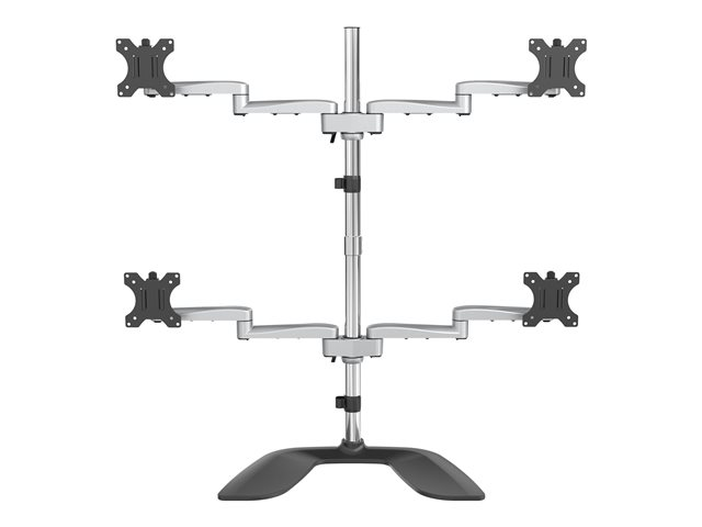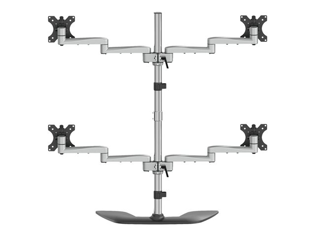 Ergonomisk VESA arm för 4 skärmar (2x2) upp till 32 tum - Fristående ledat universellt stolpfäste - Höjdjusterbar/luta/vrid/rotera - Silver - Ställ - justerbar arm - för 4 monitorer - aluminium, stål - skärmstorlek: 32" - skrivbordsstativ