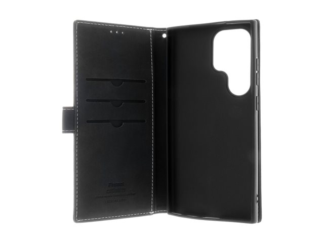 läder, termoplastisk polyuretan (TPU), galvaniserad bronsring, bomullssömmar - svart - för Samsung Galaxy S26 Ultra